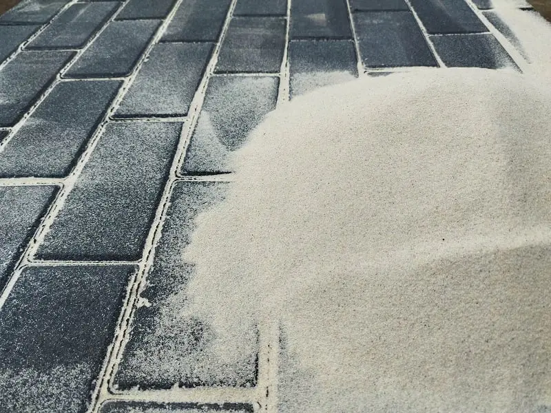 Wypełniamy spoiny piaskiem kwarcowym, co zwiększa stabilność nawierzchni i poprawia jej estetykę